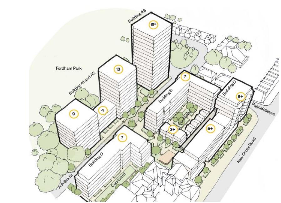 Completion is targeted for 2033, creating a safer, greener and more vibrant estate while transforming a key stretch of New Cross Road with new homes, shops and workspaces.