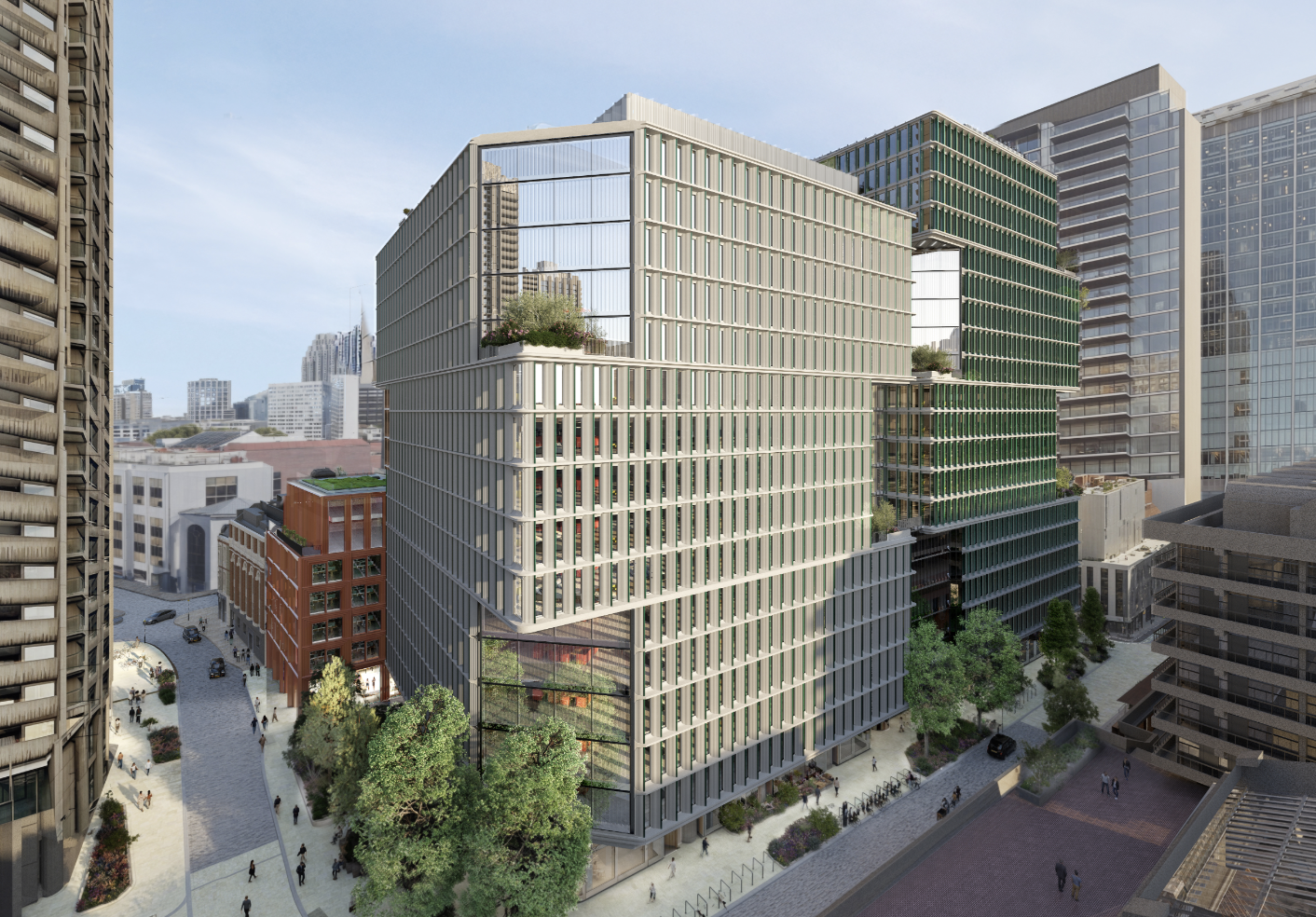 The scheme also leans harder into public and cultural benefits. A new plaza will be created on Silk Street to form a clearer gateway to the Barbican Centre, alongside a 2,282 sq m reworked public realm and a new pedestrian arcade linking Moorgate and Liverpool Street directly to the Barbican.