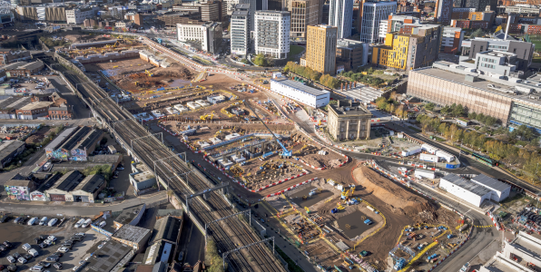 Each reinforced concrete pile has been sunk between 6m and 24m deep into the ground to form the backbone of the new seven-platform terminus, which will sit between Moor Street station and Millennium Point under a vast arched roof inspired by Victorian railway architecture.