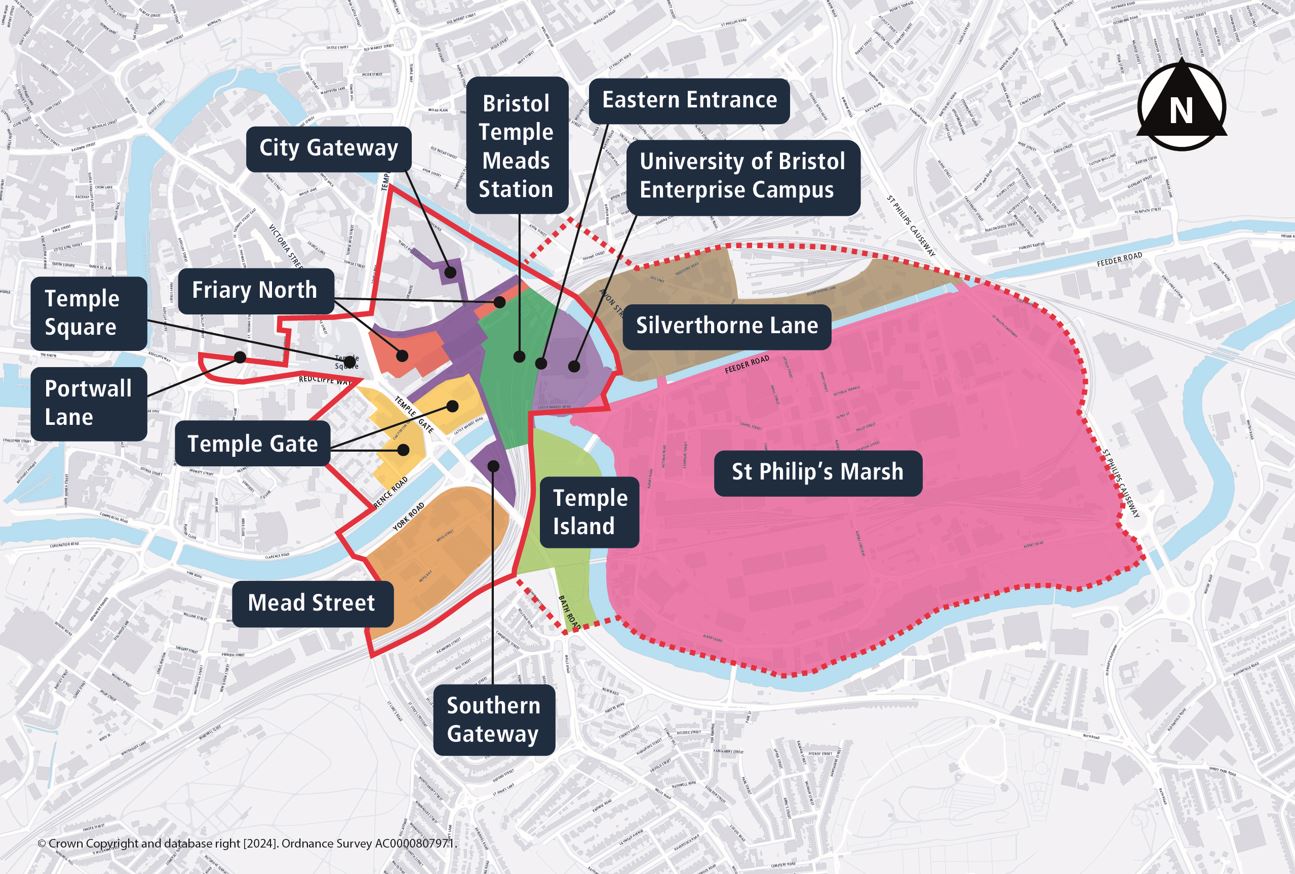 Temple Meads West covers a string of publicly owned sites immediately next to Bristol Temple Meads, including land at the Friary, the City Point building and multi-storey car park at Temple Gate, Lower Station Approach and the Portwall Lane car park.