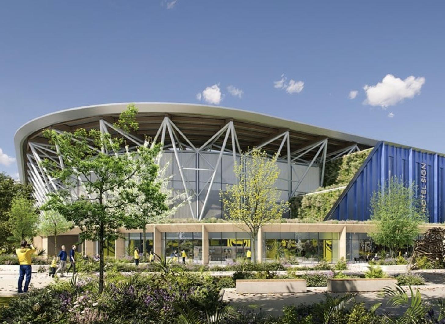 The all-electric stadium, designed by AFL Architects, will be the first of its kind in the UK. It will be powered entirely by renewable energy through air-source heat pumps, 3,500 sq m of solar panels and advanced heat recovery systems, cutting CO₂ emissions by around 80% compared with conventional heating.