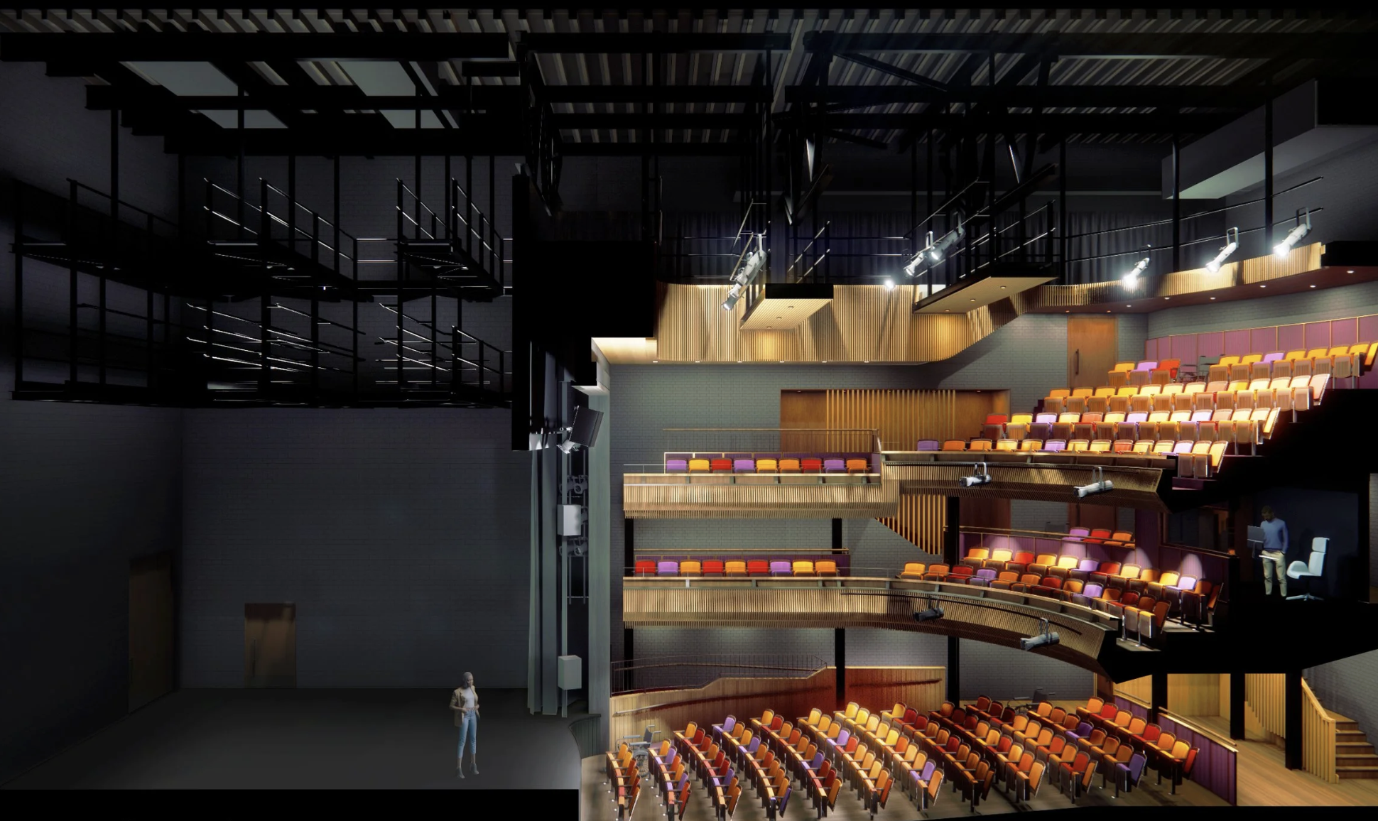 Designed by theatre specialist Burrell Foley Fischer, the three-storey venue will house a 400-seat auditorium, a second flexible performance space, dance studios, meeting rooms and café/bar areas. Careful acoustic separation will allow the theatre to host multiple events at once, pushing total occupancy close to 1,000.