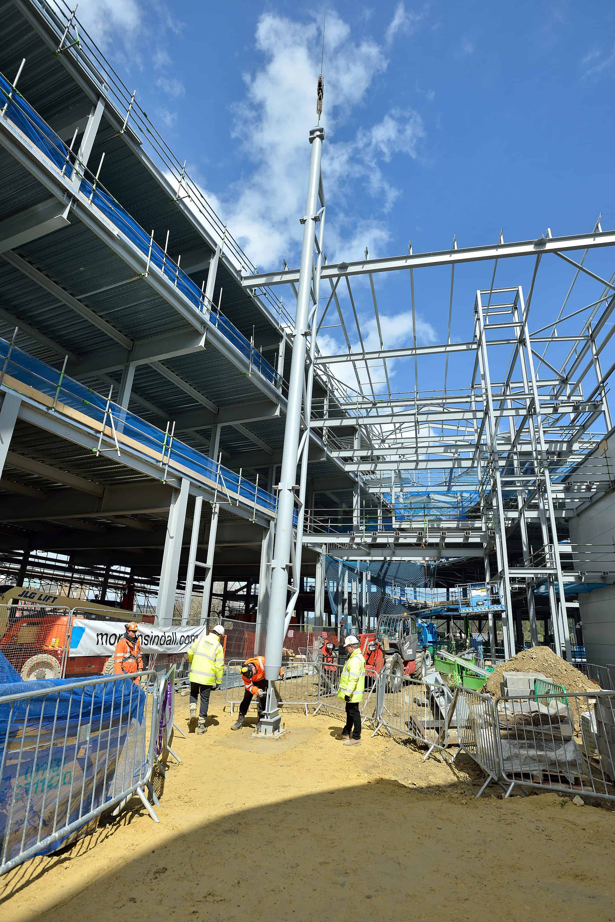 Topping out takes place at ground level when 16 metre steel truss is dropped into place