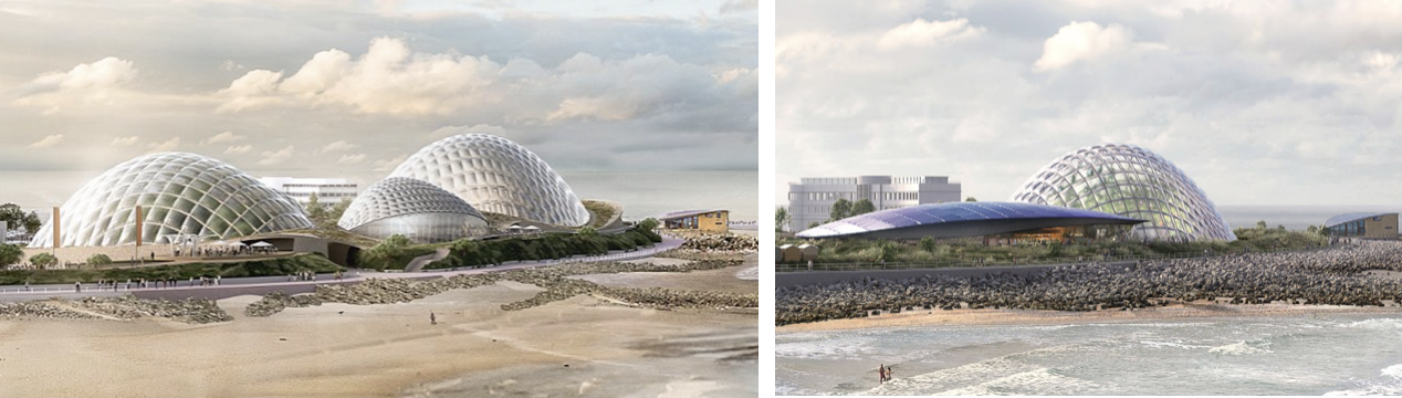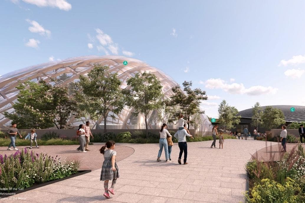 The scheme has been dramatically slimmed down since its first inception to cut costs and will now feature two shell-inspired structures housing immersive environmental exhibits, alongside landscaped gardens and public realm.