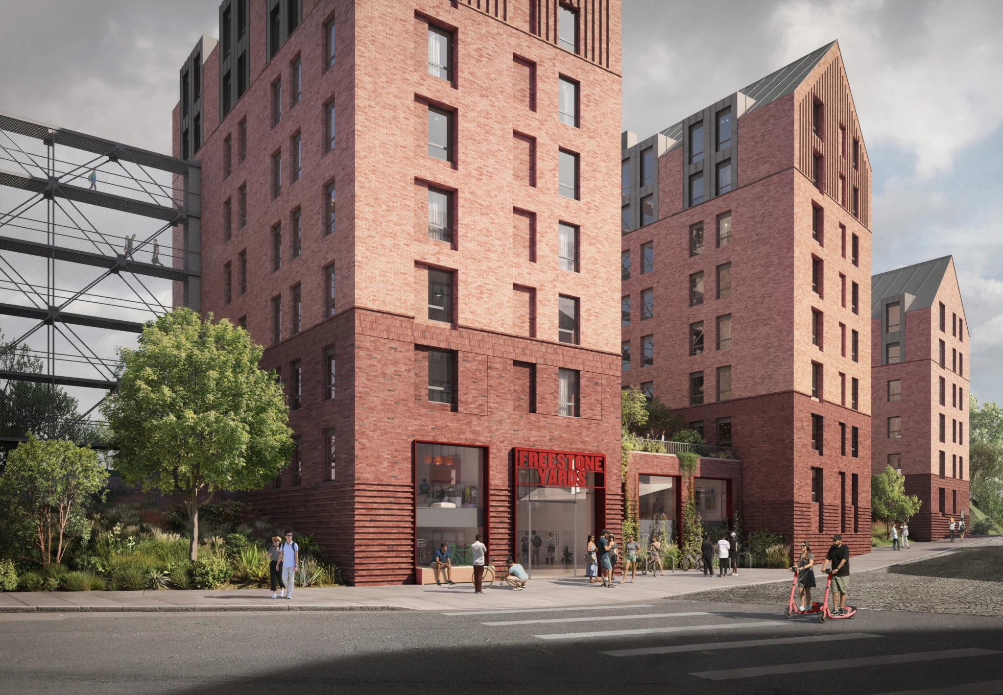 The Freestone Yards development will transform a brownfield plot in the Temple Quarter into four blocks providing 65 ensuite cluster flats and 136 self-contained studios. The scheme is targeting a BREEAM Excellent rating.